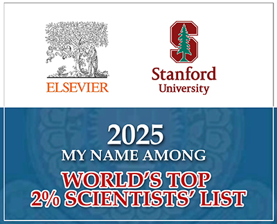 Year 2023: Once again my name was listed among 2% of top-scientists classified by Stanford University on it's prestigious list.