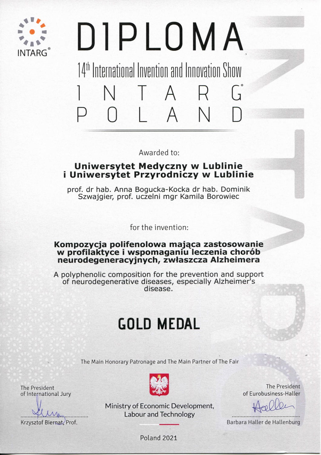 Złoty medal: INTARG 2021