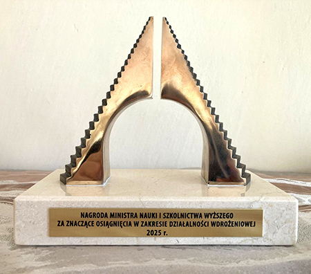 Nagroda Ministra Nauki i Szkolnictwa Wyższego za znaczące osiągnięcia w zakresie działalności wdrożeniowej.